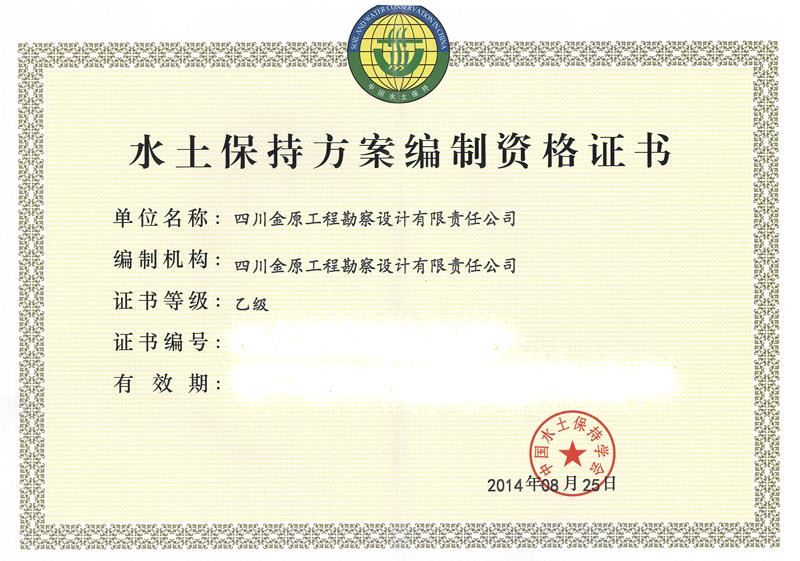 水土保持方案編制資格證書